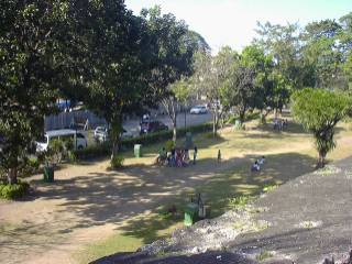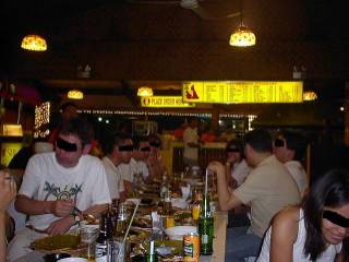 (「TSIBOGS」BBQレストラン) 店につき座席を決め、ドリンクとバーベキュー (鶏、豚、魚)などを一通りオーダー。 在住の方の到着をまっているが、 マッサージに一人出かけた仲間がなかなか来ない。 夕方の渋滞にしっかり捕まってました。 突然、店の外からバン、バンと銃声(?) なにごとと表へでる。 (本当は、出ちゃアブナイのですが) こちらに向かって走ってくる子供が2名、 すれ違いざまに足元に叫びながら何かを投げ捨てた。 ビクッ! としがた、何のことは無い、ゴミだった。 (あせらすなよー) |