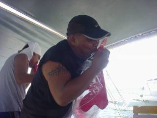 (エビマヨを膨らますドライバーのタド君)