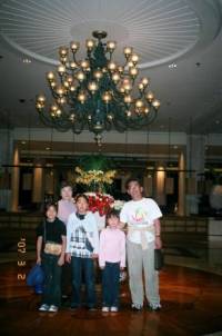 | 4時15分に旅行会社の現地案内人にお願いしておいたモーニングコールがかかり私たち夫婦と義母は起きていつまでも寝ぼけている三人娘に発破をかけました。心配した次女も今のところは症状が治まっているようです。ズボンの上にTシャツを着て来る時に着てきたセーターは腰に巻いて準備が出来た私は一足先にロビーに行って昨夜の電話賃をペソで払いました。料金は41.57Pでした。 一旦部屋に戻り子供を急かせ忘れ物がないかもう一度チェックしているとなぜか冷蔵庫の上にEvianの空いたボトルが・・・。自分達で買ったミネラルウォーターが1リットル×2本封も切らずに残っていて無料のミネラルウォーターもまだ数本残っているというのになぜ有料のボトルが空いている?どうせおばば(義母)の仕業だろうと思ったけど払わないわけにはいきません。帰りにもう一度チェックをしてから部屋を出るとちょうどポーターが現れて家族の荷物を運んでもらうついでに冷蔵庫のチェックをしてフロントに電話していました。フロントでチェックすると150Pとのこと。部屋にはまだ栓の開いていないボトルが数リットルあるというのに・・・・。