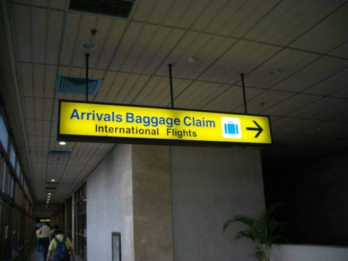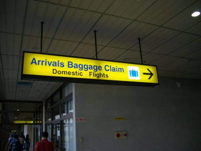 国内線の荷物引き取りターンテーブルを通過し 国際線の荷物引き取りターンテーブルに行く