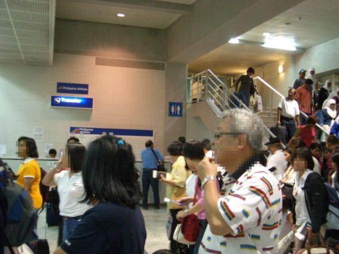 」の指示に従い進んで、階段を下りると入国審査を正面に見て右側に乗り換えのカウンターがあります。ここで国内線の搭乗券を渡されます。