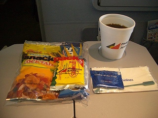 機内では、軽食がだされます。 | |